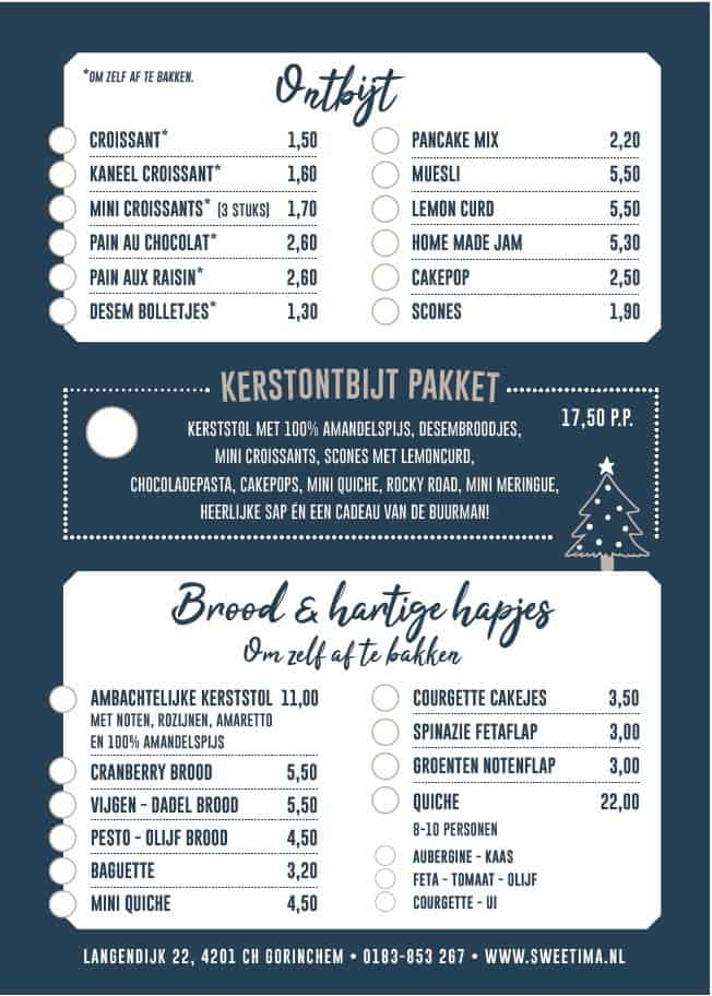 We hebben voor jullie een Kerstmenu samengesteld. Van Toetje nooit genoeg tot Toetje alleen voor mij. Kerst “Slice of Heaven” en Mokka Noten taart. Kerststollen, ontbijt en speciale taarten om er van te genieten.
